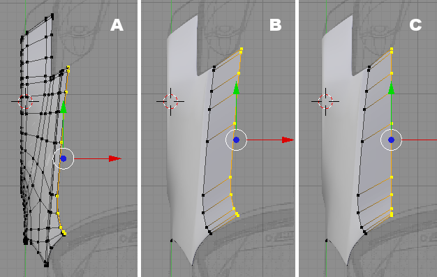 Fig 5a: extruding the Fender in top view. 5b: adjusting the contours.
