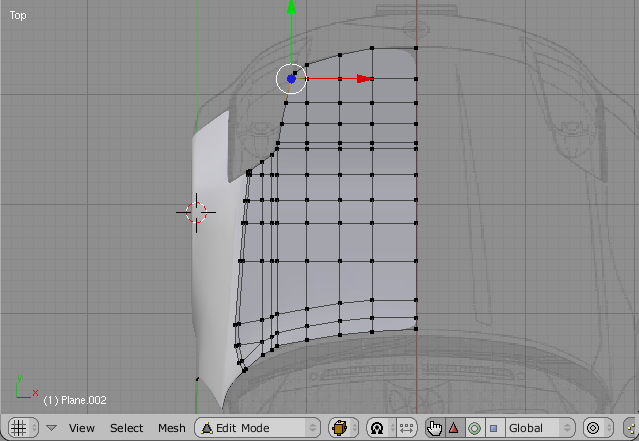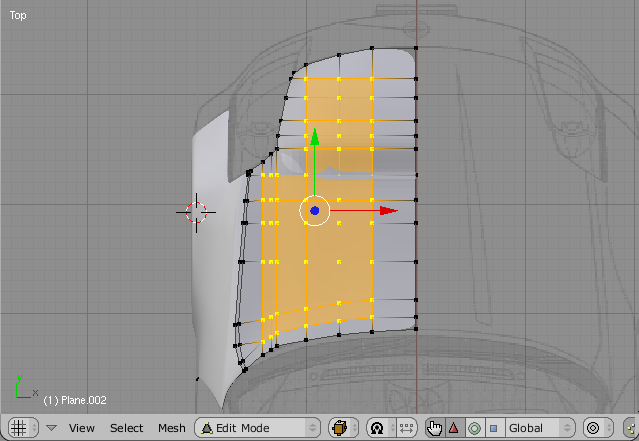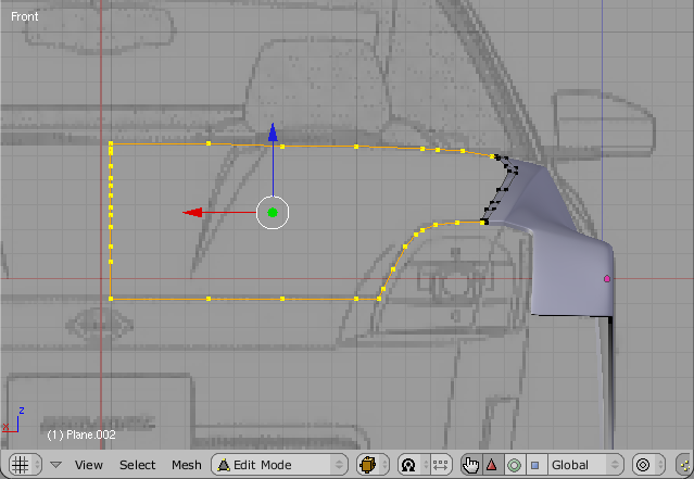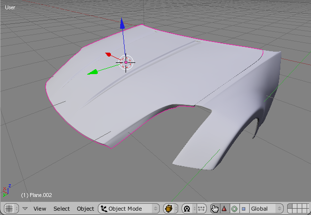 Sometimes a part Will be a bit tricky todo do by just extruding. As we can se in the fig 16, the Bonnet Mesh is currently not Smooth due todo the fact that we have only done the extrusión in top-view.