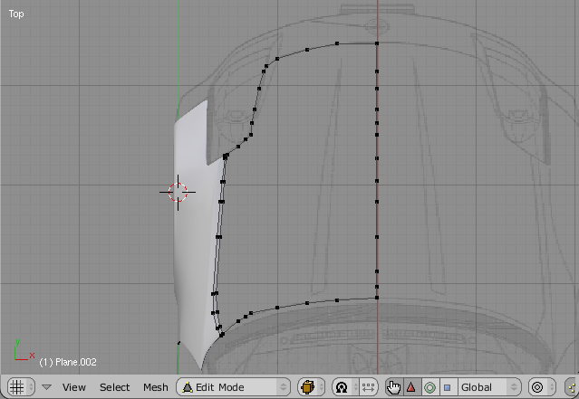 Let use the Bonnet Mesh again. Go todo the top view and select the Bonnet Edge as in fig 22. Position it correctly in the middle by referencing the blueprints below. Then, press [shift + and select cursor todo selection in the popup. This Will bring the cursor todo the middle of the selection. Also, since this is the middle of the car to, the mirror modifier Will use this as the mirroring point. You Will a los ned todo position the Mesh pivot at this point. To do that, get out of Edit Mode and press f9, then click center cursor in the Mesh tab.