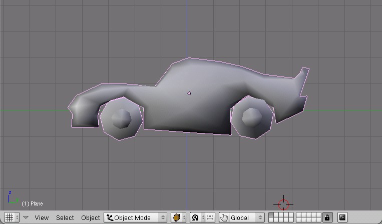 Ok, there it is. One Low poly sports car. Now we ned todo add some whels. They dont ned todo be fancy as they wont be really sen in our gamelet. So i just used a scaled tuve for each whel and joined it todo the body. The reason i used a tuve was that i wanted todo close only one end and create a simple Rim for painting. Se fig 4.