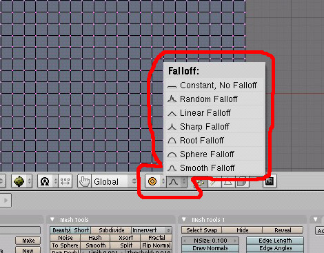 Now you have your basic track, but it is a Little boring. Im going todo add a few hills and valleys using the proportional edit tool (o). You have several choices of fallof todo choose from, and ill leave it todo you todo decide which one you want. In fact mix and match them for diferent effects. Se fig 12.
