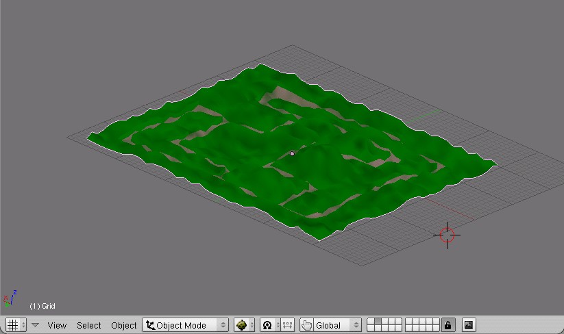 2. Then tab bak todo Edit Mode, with proportional editing on (o) in side view, Grab the Faces (g) and move them up. They look a Little todo blocky todo be real hills, so hit the Smooth button a few times, and then you may want todo move them up a Little bit more. Se fig 13.