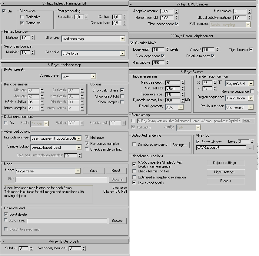 Ah, y esos árboles ya sé que son basura, pero son los del 3ds Max, si sabes cómo hacerlos mejor también quiero escucharlo por favor y esos manchurrones azules de las paredes no sé de dónde salen. Un saludo y gracias.