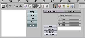 - software Lamp: add another Lamp (Hemi type) pointing behind the Camera, and parented todo it. Set its power todo a high level, more or less 2. Youll se why we use this Lamp later.
