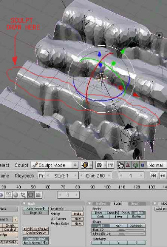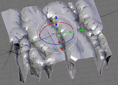 step7: you can now use the middle mouse button place the perspective view (orthogonal for instance by pressing the Numpad 5-key) todo allow you todo draw in the Regions of the rift which are in the rounded borders todo make these look more like figure7. (tutor003.blend).