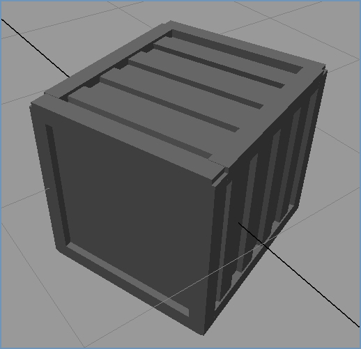 Ahora sencillamente creamos un cubo que mida 0,1 (x), 1 (y) y 0,1 (z). Va a ser similar a un tablón rectangular, perfecto para lo que necesitamos. Lo posicionamos en un borde del cubo, y lo duplicamos, lo rotamos, y lo ponemos en otro borde, y isa para completar los 12 bordes de un cubo. Al final, se debería ver así el cajón: