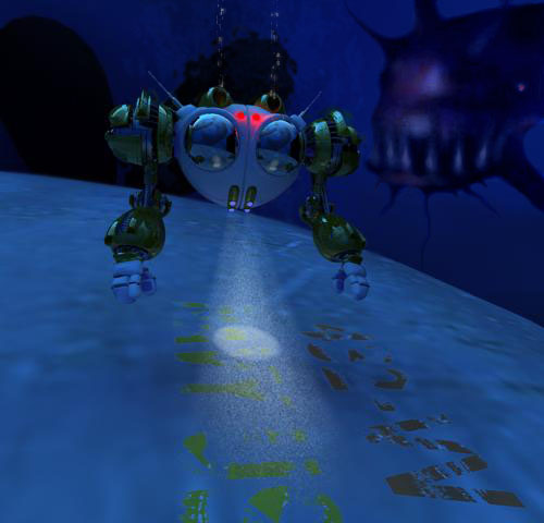 Si abis para coger ideas no está nada mal, me mola la escena, siempre viendo infoarquitectura, me imagino que será muy difícil conseguir que sea creíble que está bajo el agua, que tal quedaría si le añadieras ese mismo rastro de partículas que se ven en el haz de luz a toda la imagen, claro no tan iluminadas, pero le daría más realismo ¿no? Me vienen a la cabeza esas imágenes de los minisubmarinos explorando el casco del Titanic rodeados de partículas de polvo y escoria marina.
