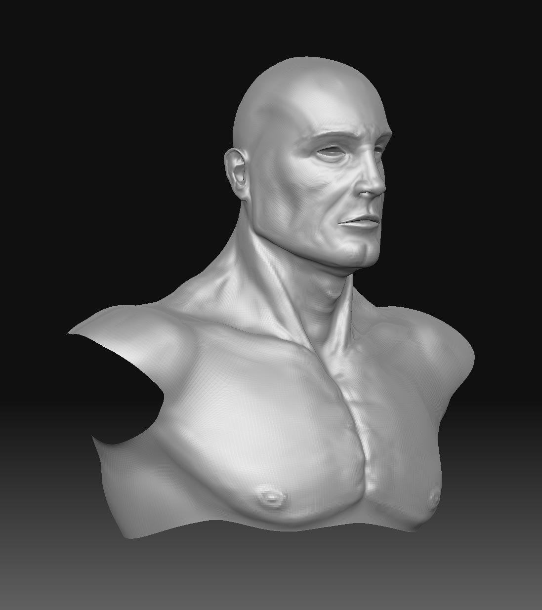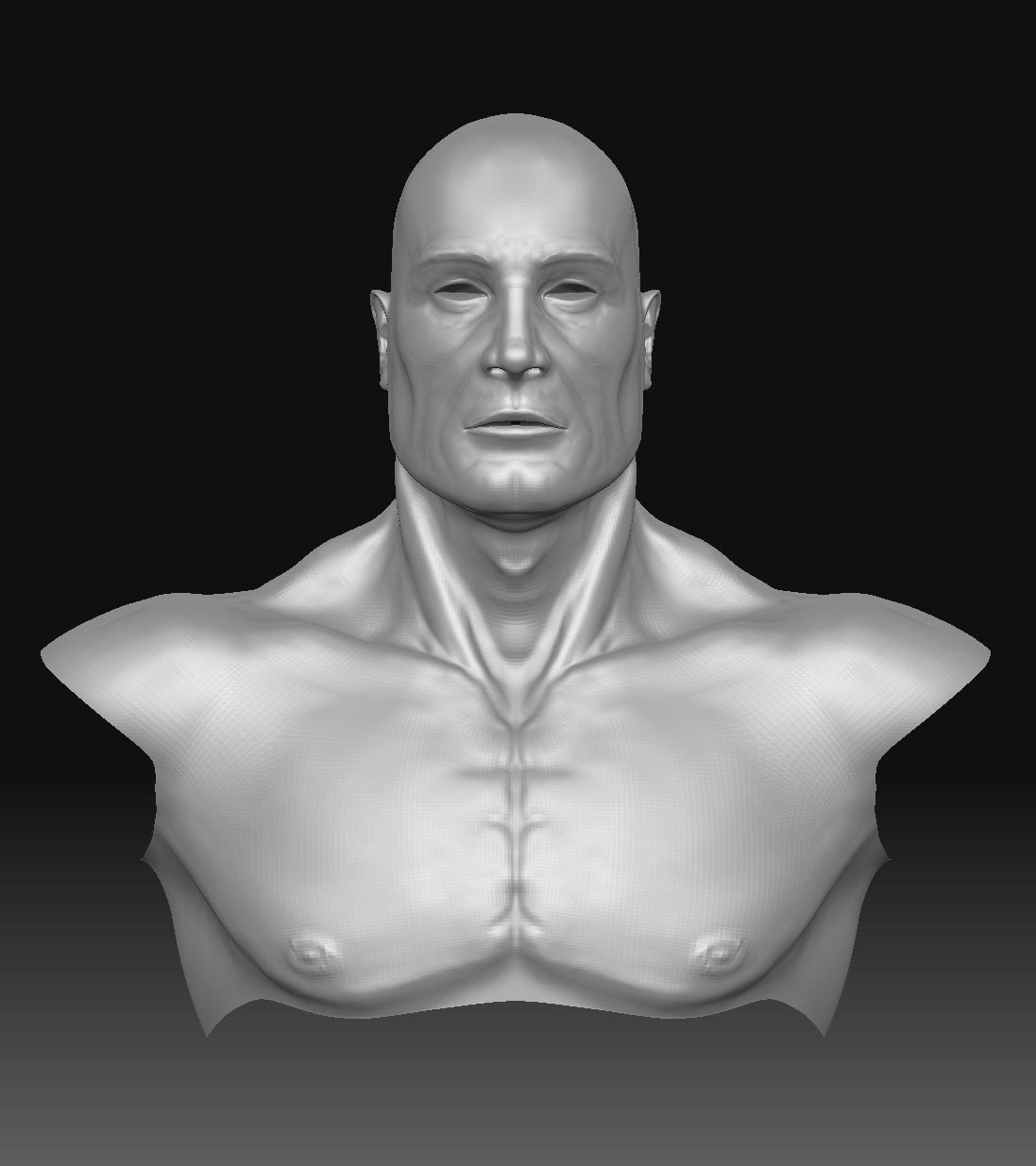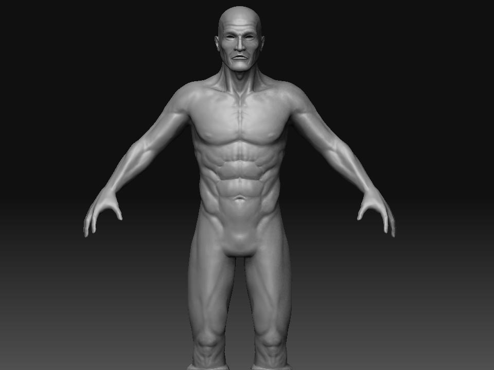 Hola, después de haber terminado mi primer cuerpo y haber hecho algunas pruebas con este en ZBrush, he decidido meterle a fondo a la anatomía en este y he cogido una base y me he puesto a ver qué salía, de momento ha salido un viejo con cuerpo de joven. Ya me diréis que os parece, tengo pensado terminarlo y marcarle todos los músculos del cuerpo y hacerle también pies y manos, a ver qué sale. Gracias y un saludo.