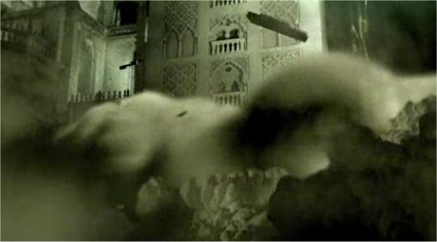 El plano de la giralda ya demolida donde sale humo, ¿por qué tarda tan poco? Queda muy bien y pasa rapidísimo.