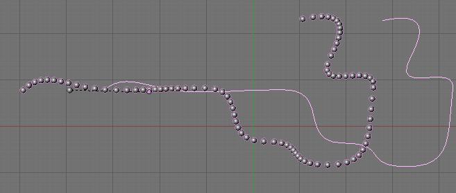 Entonces creo una esfera y las convierto en padre e hijo, y le doy a dupliverts, pero las bolas quedan muy separadas y si edito la curva y la subdivido se comen unas a otras.