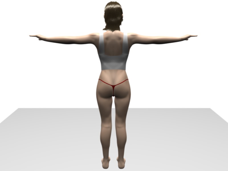 Bueno el cabello y la ropa son originarios de Blender y la parte del tatuaje entre la piernas también yo estaba modelando una con un tutorial de artejol, pero como tuve que formatear mi computador se me borro sino con gusto habría elegido ese en vez de hacer una con el Makehuman pero disculpas por el mal entendido (el cabello fue realizado con las propiedades físicas de Blender).