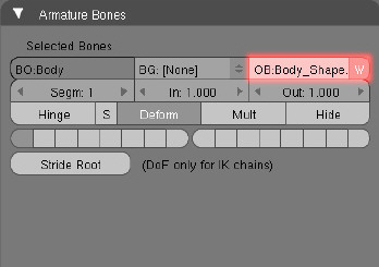 - go todo edit buttons [f9] and in the armature Bones tab type the name of the object todo be used as a custom bone shape. (se figure a2) make sure todo a los enable the w so the object is always visible as wireframe.