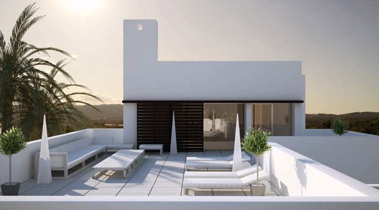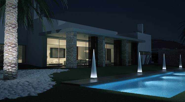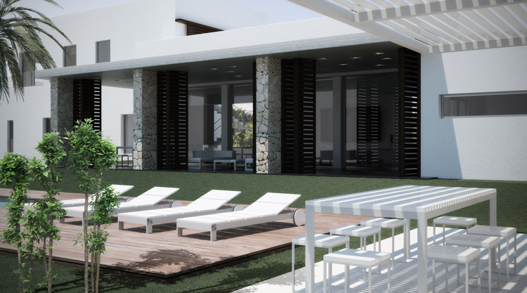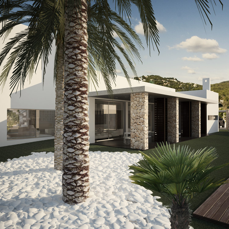 Hola Javi, aparte de lo que te han comentado yo te sugeriría que para el material blanco de la vivienda utilizaras algún Bump, desplazamiento, material composite, para que no te quede todo tan perfecto, eso le daría más realismo, ya que una casa con esas líneas tan perfectas, y tan blanco todo y todo tan limpio creo que no lo vas a encontrar en la realidad, también en algunas imágenes intentaría de darle más contraste a las zonas de diferente iluminación. Un saludo y buen trabajo.