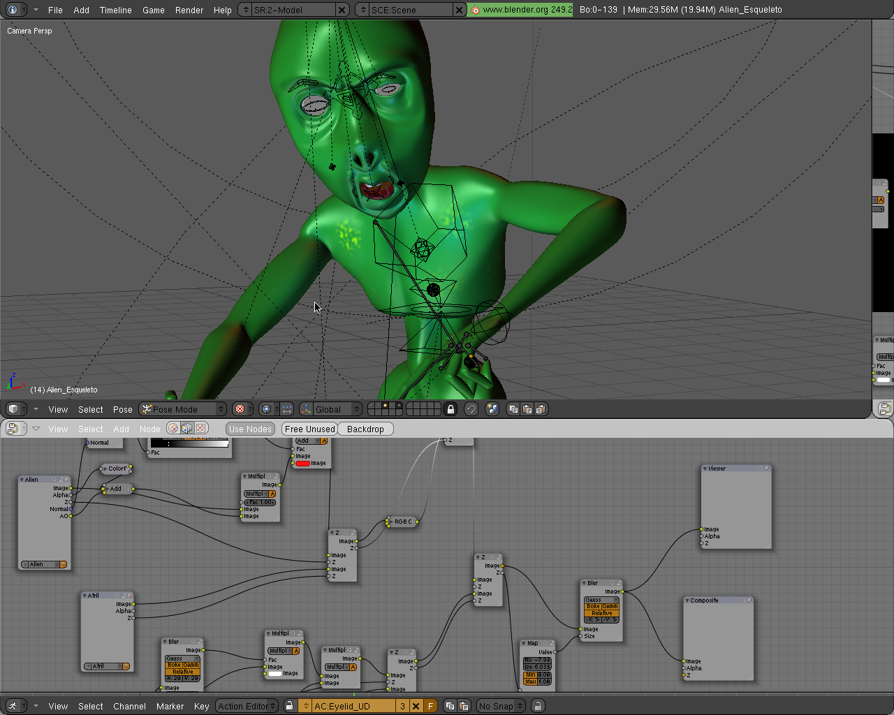 Fotograma de regalo, se va a estirar un poco esto de la animación. Para colmo cuando empiezo veo que podría ponerle algo más el armature y vuelta para atrás.