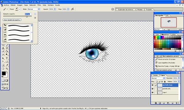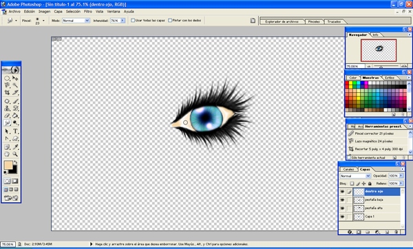 7- Para tener los dos ojos solo hay que duplicar las capas, edición/transformar/voltear horizontal, como os podéis imaginar.