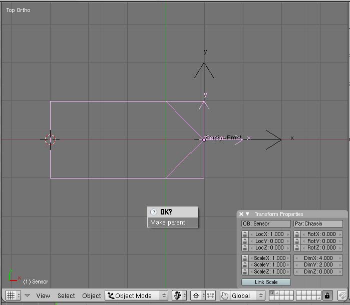 Now, the chasis object has the shape of an arrow head.