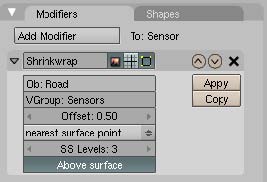 -Name the plane sensor. Select the chasis, and add a track todo constraint. In the file target, type sensor, in the field vg (vertex group), type tail. To = -x, up=z. Leave world space in the two cspace choices.