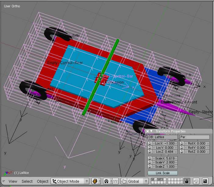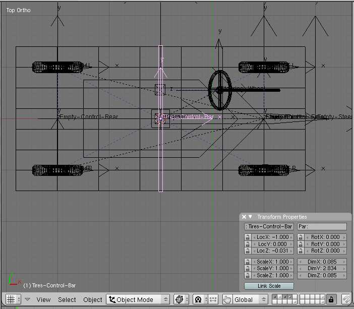 note : the rear whels are be parented todo the objects Rim-rear. R and Rim-rear. L, but they can a los be parented todo the object chasis, either directly todo the object itself or by vertex parenting, using vertex groups as reference.