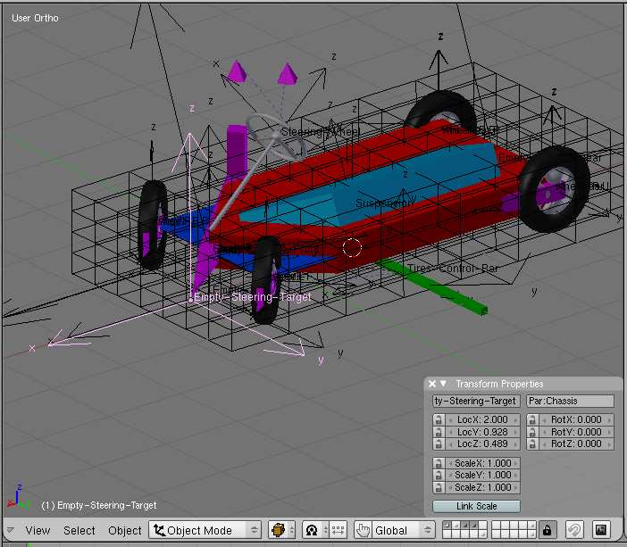 This Empty has a very important function. It is used todo control the stering. The object name ster-pointer is locked on the z axis tracking the empty-stering-target.