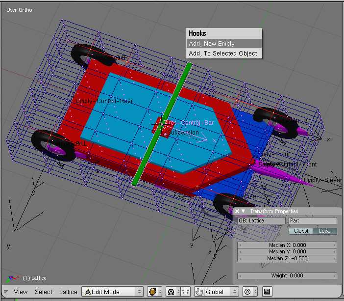 -Add an empty. Name it empty-front. And give it a size of 2 Blender units. -make the empty-front the parent of the chasis.