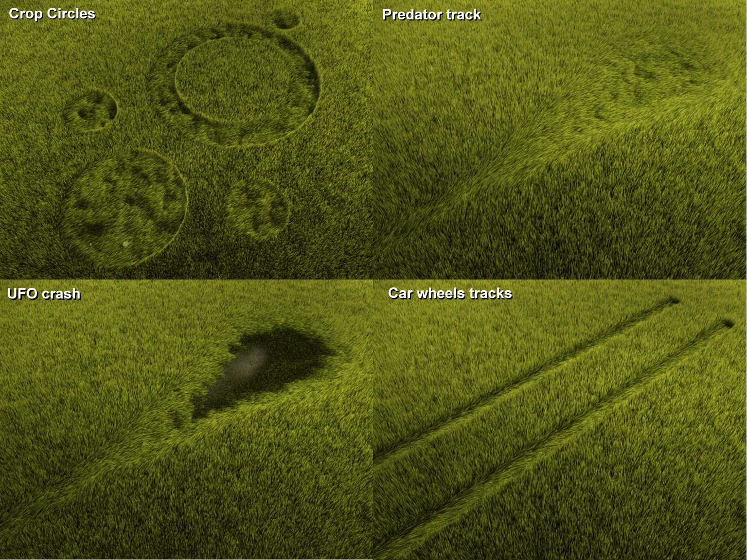 After reading Andrews tutorial, the first cuestión that came todo my mind was : great, we have nice Grass, but now, how todo mow the lawn in an animation? After some searches and experiments, y found that the same method was usable using hand drawn textures or animated textures. Almost every effect can be achieved, like the track of a lawn mower, a car, a Predator running in high weds and everything else you could imagine.