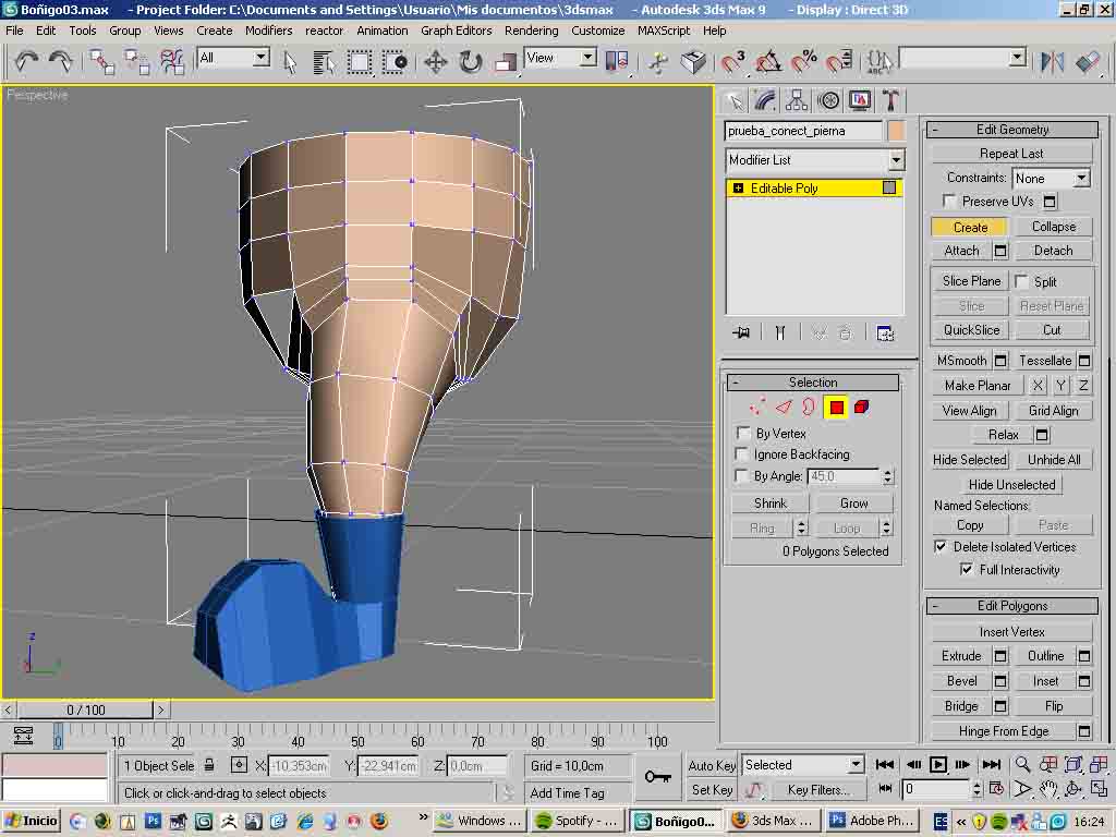 Gracias: Por lo que he leído (y lo que me dices) con booleanos voy a flipar y al final no me va a servir. Simplemente quería ver si había algún truco o algo para conectar esa capsula a la pierna y así ahorrarme hacerla polígono a polígono.