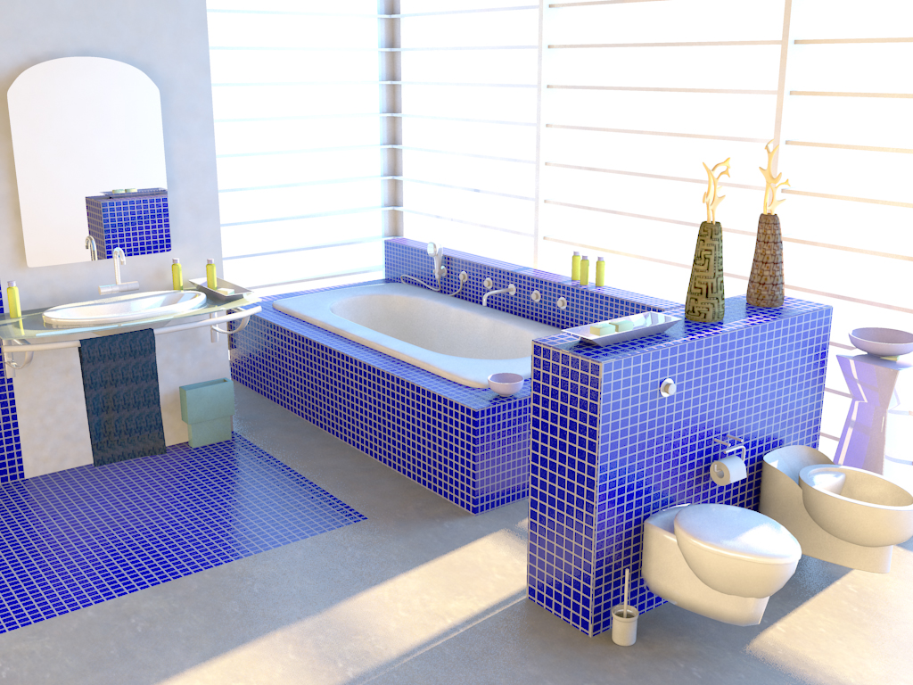 Hola magie, gracias por ver mi escena. Es cierto lo de la toalla, pero la dejé de lado concentrándome en la luz. El del fondo es un videt, aunque le falta el grifo que está por modelar. Voy a bajar la intensidad de la luz del fondo a ver qué tal, gracias de nuevo.