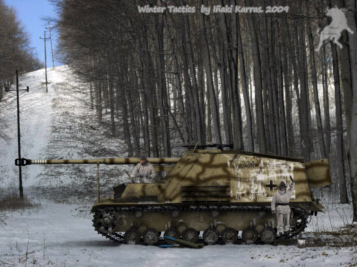 Ahora la versión estática del bicho. Invierno del 44, la tripulación se pone a camuflarlo ante la primera nevada del invierno, las tácticas cambian y hay que esconderse.