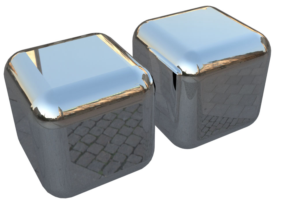 El problema es cuando tengo geometría curva y le asigno algún material con reflejo, como cromo, ya que los reflejos se me ven cortados cuando tengo unido una superficie plana a una curva.