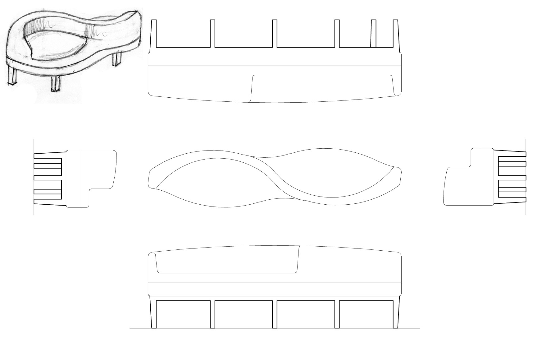 Hola a todos, os dejo el boceto (más los alzados y la planta para que lo véais más claro)de un sillón que tengo que modelar en 3ds Max, y aún no sé por dónde empezar, ya que, aunque tengo un poco de experiencia en el programa éste diseño que tengo que hacer se me antoja un poco complejo.