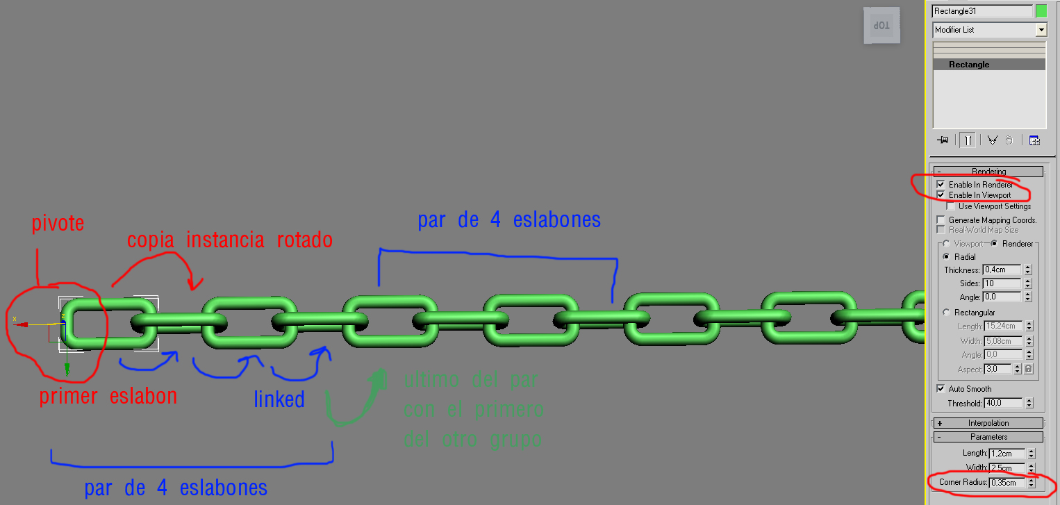 Buenas. Estoy intentando darle movimiento a una cadena que ya tengo modelada, he visto varios tutoriales sobre el tema y he conseguido enlazarla a una cadena de huesos y de ahí con Hi Solver puedo darle cierto movimiento.
