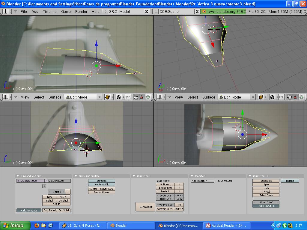 Creo que estoy captando mejor la IDE, a, los puntos de control funcionan similar a los puntos tangentes y demás que uso para manipular la curva beizer en la práctica anterior. Manipulándolos pude adaptar la curva al contorno de la plancha.