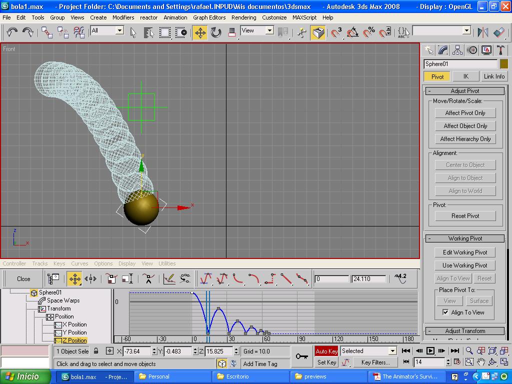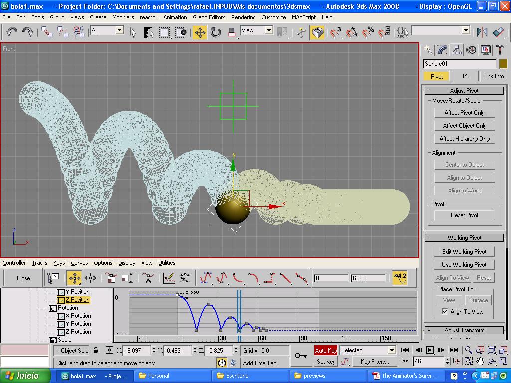 Ok, primero lo primero. Como prometí ayer, traigo lo de la bola, solo que es un archivo max. (sin renderizar), para poder irlo arreglando y, además por esto de que el archivo es más pequeño y sube más rápido. Con respecto a lo otro, supongo que, la respuesta que estaba buscando dentro de lo que me han dicho, significa que la animación anterior está totalmente desastrosa y no hay nada bien, así que, iremos por partes. Aquí adjunto la primera bola que rebota, sin ningún intento de correr antes de gatear. Ni Squash & stretch, ni obstáculos ni nada más. Solo timing y spacing. Super sencillo, para ir puliendo cada uno de los pedazos. Entonces, por favor, ayúdenme a ir mejorando, ya que aquí sólo cuento con ustedes, ya que no hay cursos de animación, ni puedo pagar ninguno online, puesto que no tengo forma de hacerlo. Sé que así es mucho más difícil, pero estoy dispuesto a dedicarle todo el tiempo que pueda, ya que quiero llegar a ser un buen animador. Gracias de antemano.