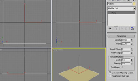 Volver al 3d Studio Max, crear un plano o caja (box) de largo 200 unidades, 200 unidades de ancho, con 1 largometrajes / ancho del segmento.