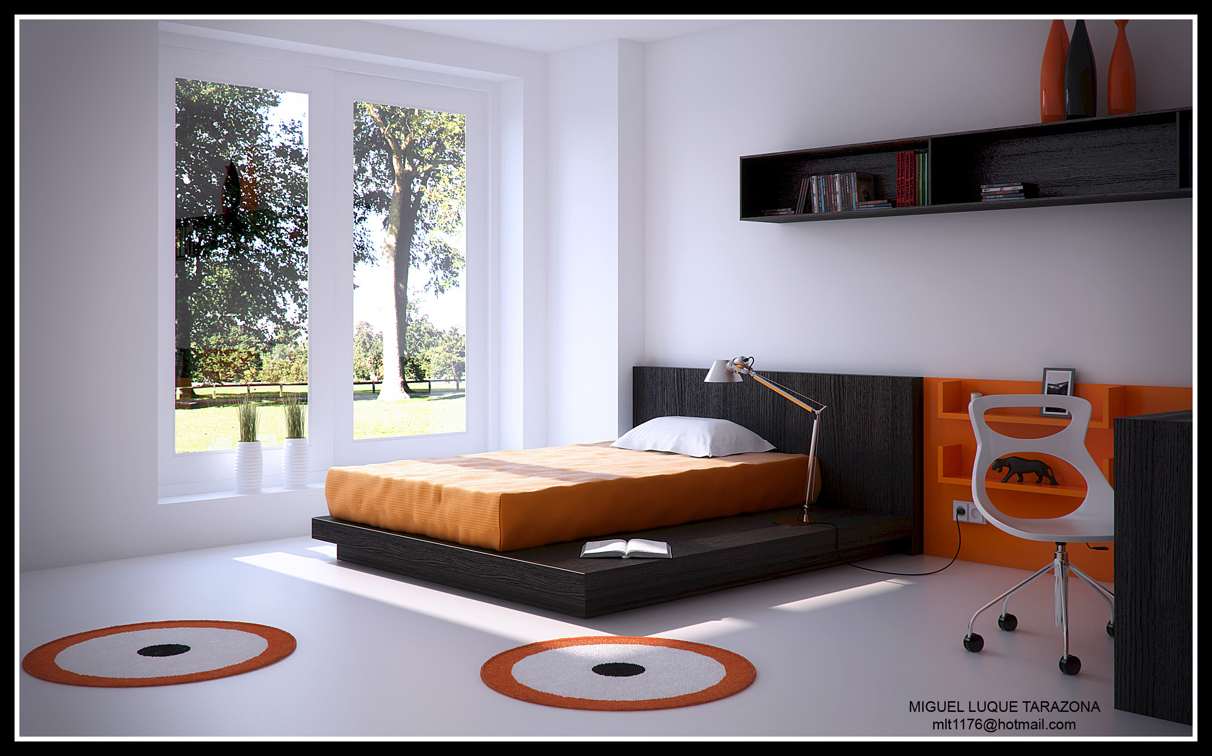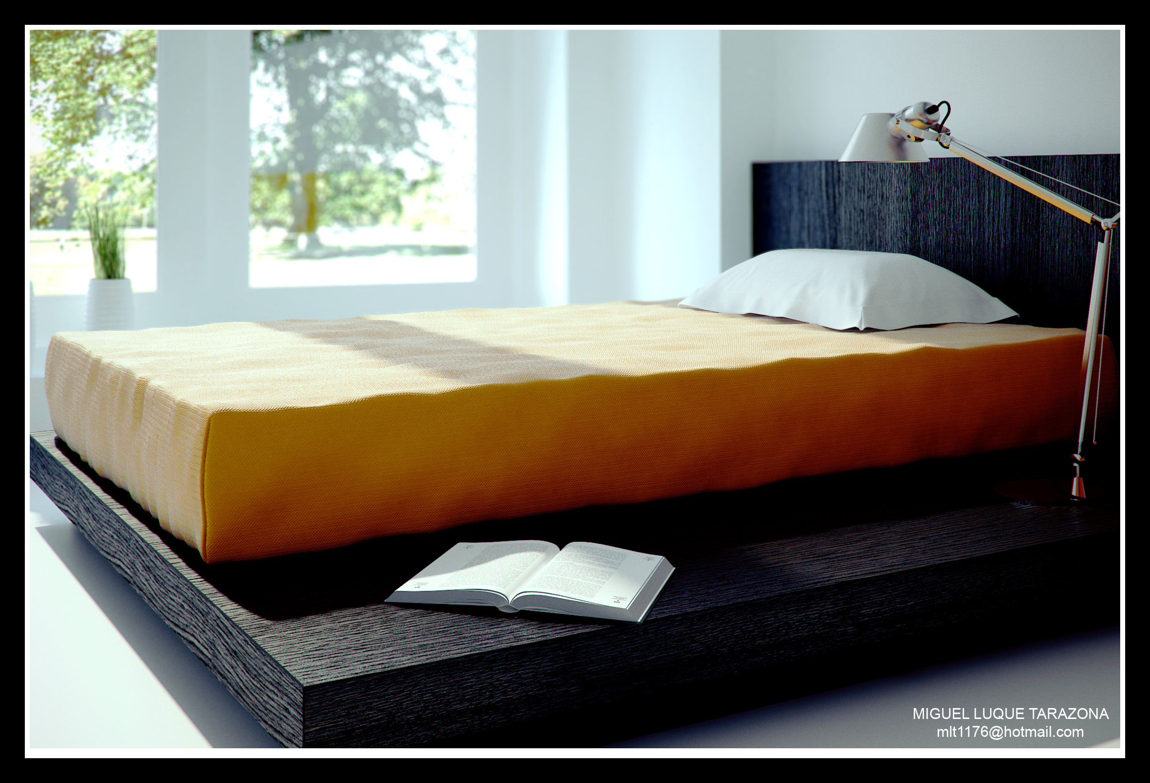 Hola según sus sugeriencias, he tratado de corregir algunas cosas: Texturas, intensidad de luz, el colchón, las circunferencias geométricas de la alfombra entre otros detalles.