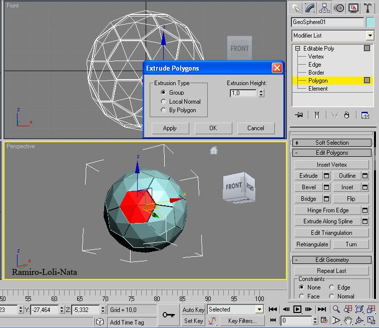 5.- Una vez seleccionados los doce pentágonos diríjase a edit Polygons y.