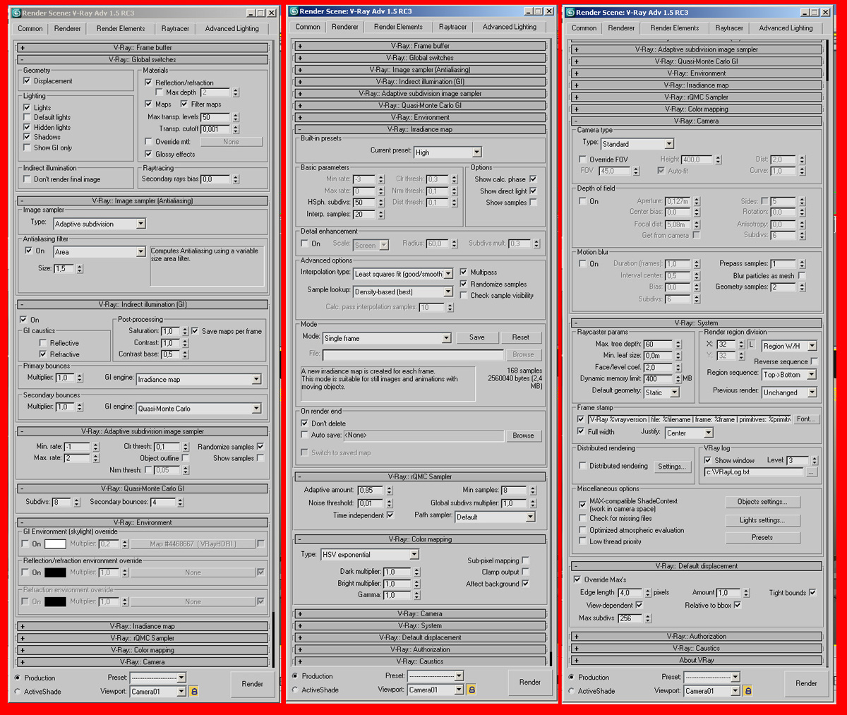 La configuración del Vray es lo poco que se, y con esa misma configuración idéntica hice esta escena (*.ace) unas semanas atrás.