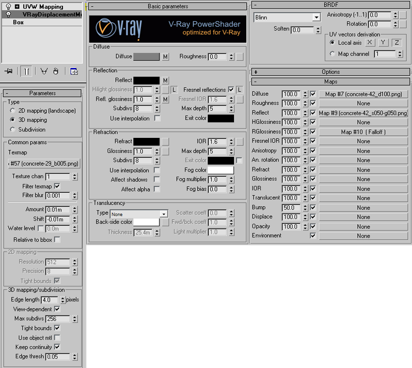 Así si no deseo usar el desplazamiento, lo quito y uso el mapa de Bump. Además, que se obtienen también resultados muy buenos combinando Bump y desplazamiento (el mapa de Bump para desplazamiento siempre en b/n contrastados a ser posible).
