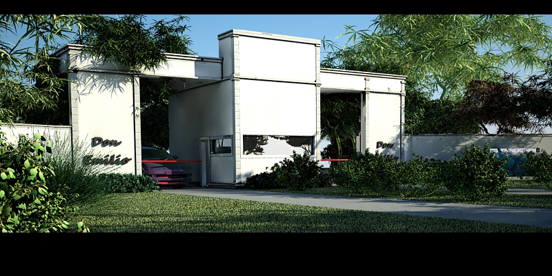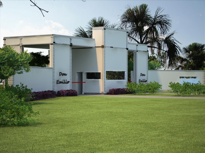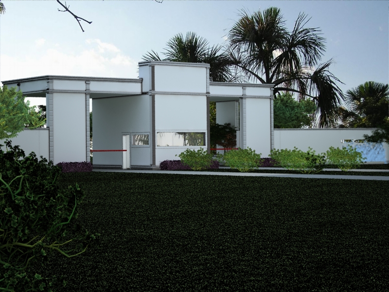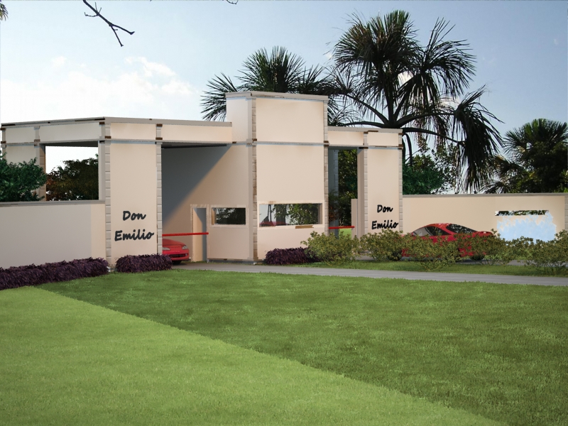 Lo del pasto y las columnas marrones me imagino que es un tema de materiales.