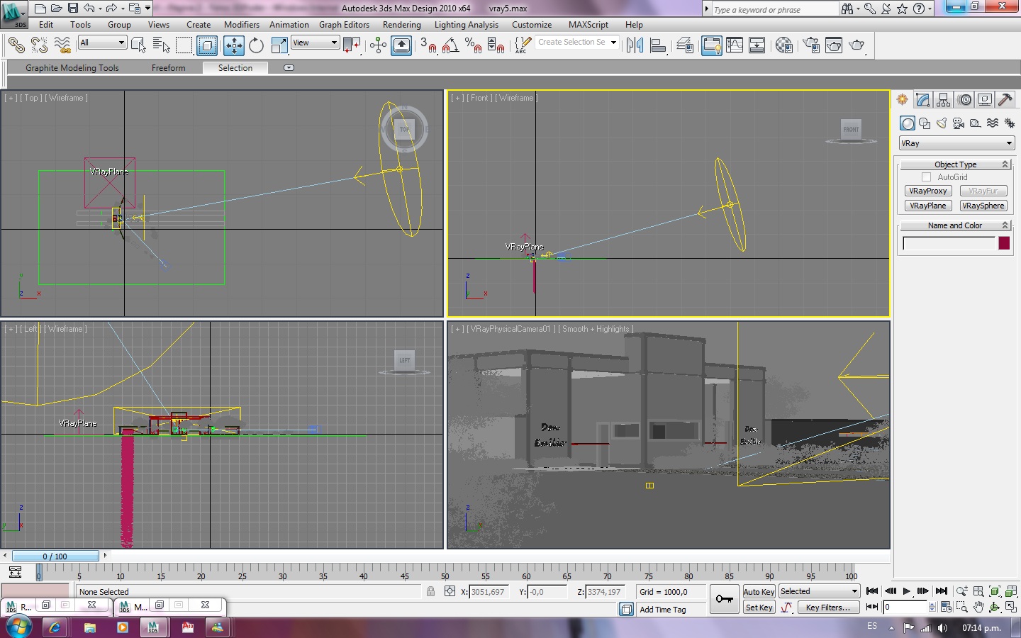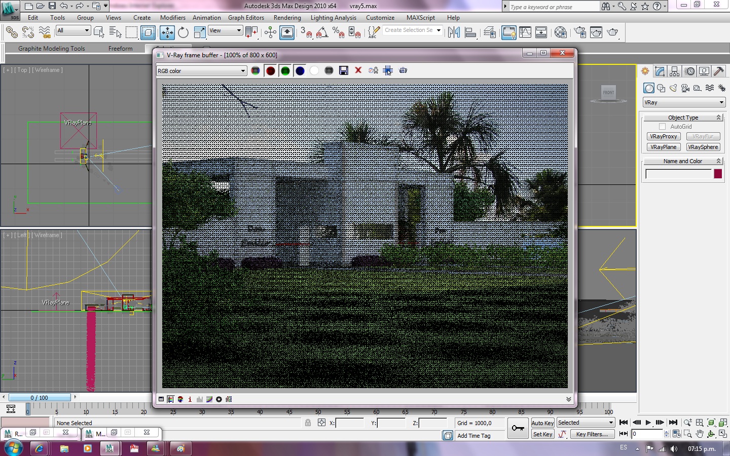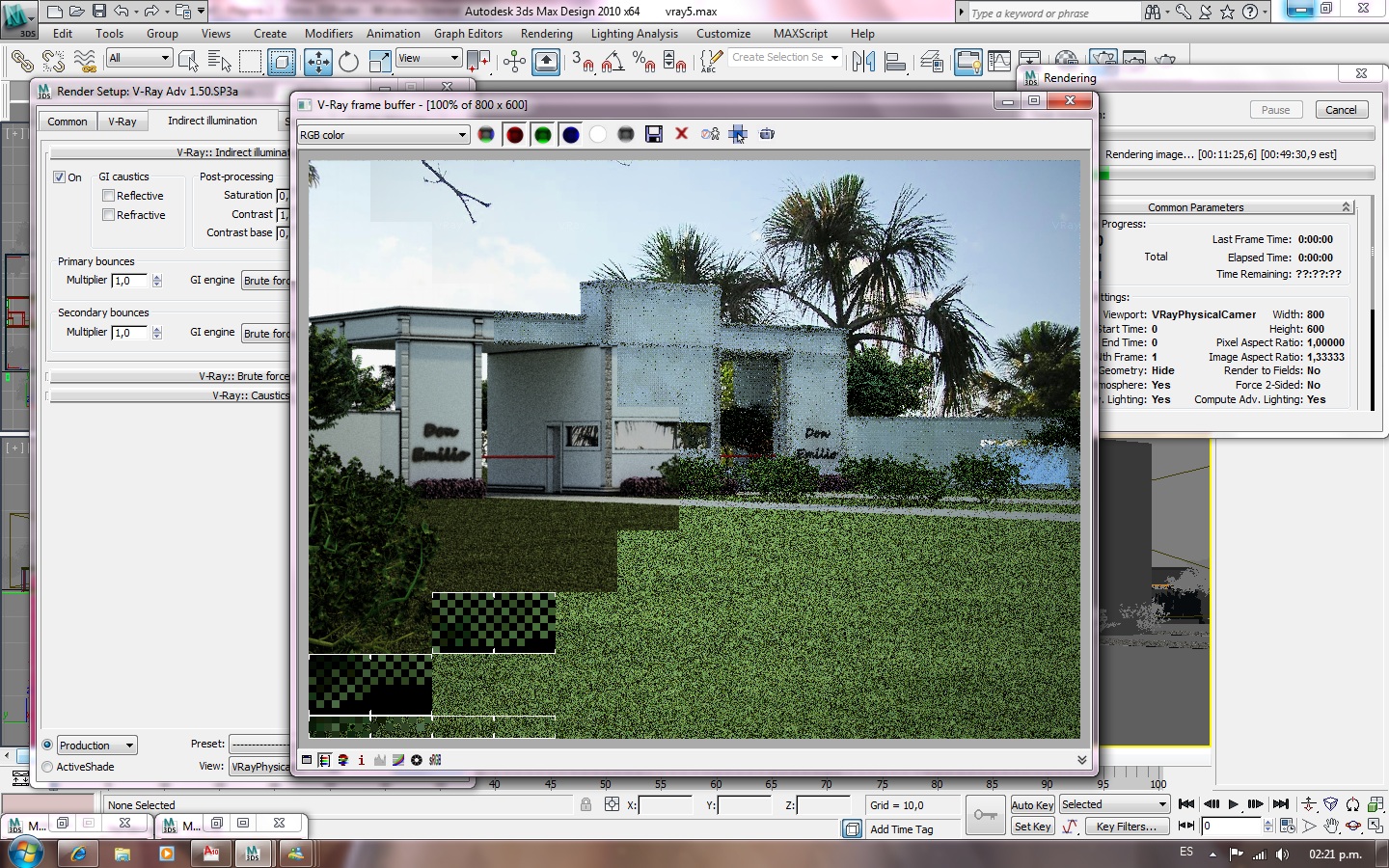 Vray Sun, bájalo a 2.1 o 2.2 y sale más azul. El sol te conviene ponerlo a 45 grados de la cámara (+30º -30º a gusto) el tema de ponerlo junto con la cámara o totalmente opuesto a la cámara es que no vas a tener sombras o las vas a tener todas y muchas veces las sombras visten muy bien a un render.