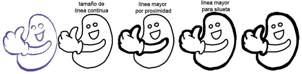 3_ líneas de entintado, respecto a esto si bien no existen reglas ni leyes claras también requiere planeación y es bueno hacerse de un sistema para mantener el estilo y consistencia de las ilustraciones, especialmente en el caso de los cómics, por eso aquí pongo unas pocas opciones simples que pueden ser adoptadas dependiendo del estilo que se quiera realizar. ( enlace ).