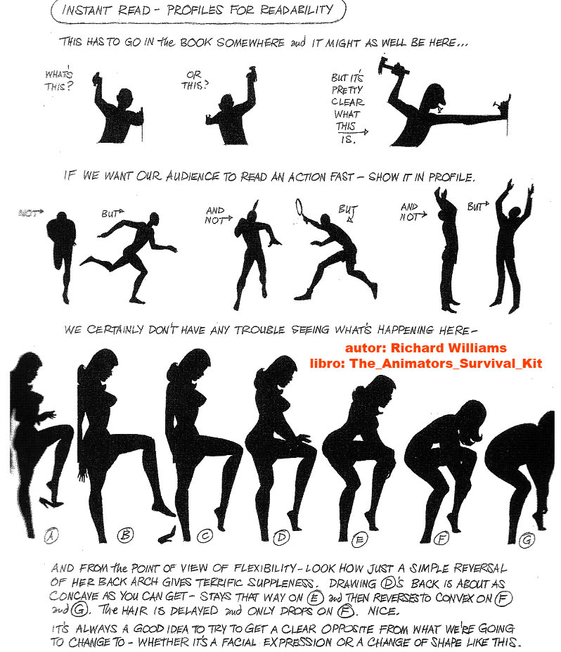 1_ planear la silueta (link), es muy difícil leer la silueta del personaje, sus características o la acción que está ejecutando, por eso es muy importante imaginarse el personaje pintado completamente con un color plano para leer solo la silueta.
