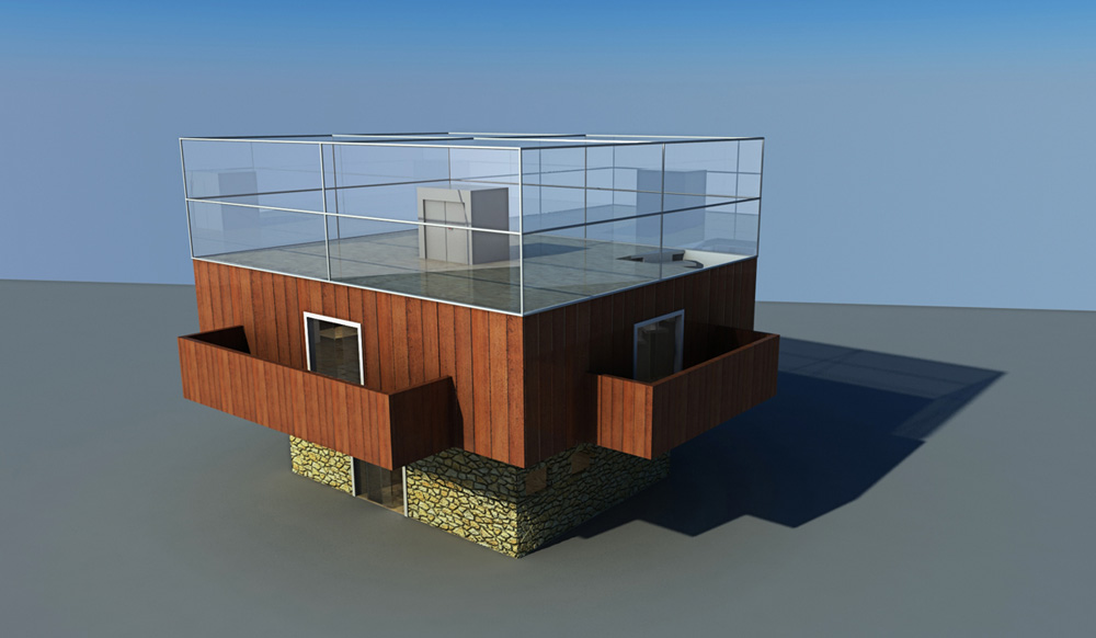 Buenas. Este es el primer ejercicio de exterior, o edificio que hago. Se supone que es una especie de observatorio público, para que la gente vaya con sus propios telescopios y tal, para ver el cosmos.