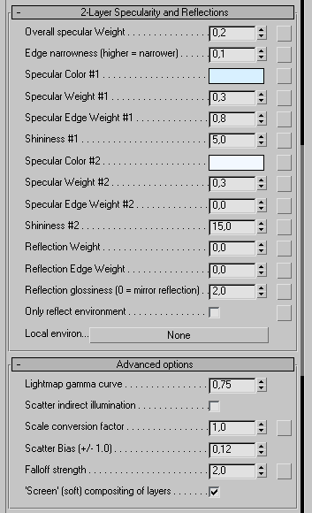 parámetros 2-layer specularity and reflections.