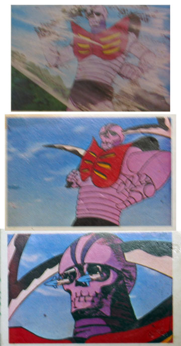Y lo que cambiaría es el excesivo metalizado del monstruo rival de Mazinger Z, y su cabeza no me convence, (tu mandíbula es y triangular) (y el acordeón en el cuello me parece fuera de lugar) me he ido a ver los cromos, sale violeta, no tan metálico.
