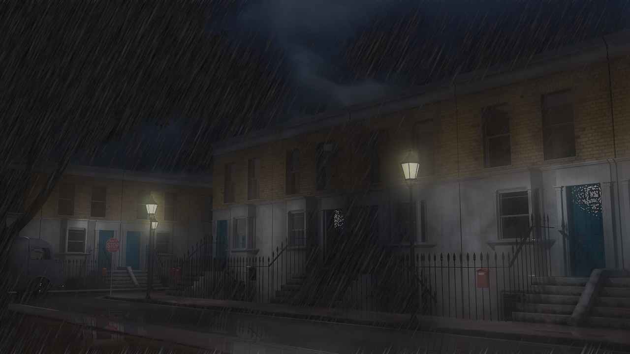 La lluvia también estaría bastante mejor usando partículas en 3d por varios motivos: primero porque las zonas más profundas, mostraran más gotas, los diferentes tamaños estarán acorde a la escena y por último las gotas reaccionaran a la iluminación de la escena (ejemplo: el halo de las farolas mostrara gotas iluminadas).