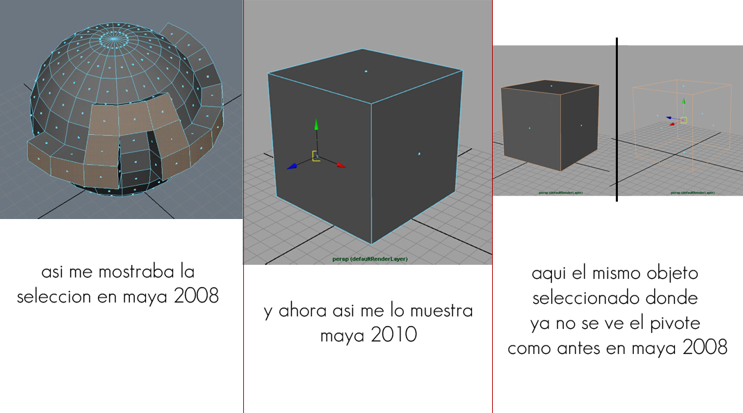 Hola a todos, tengo un problema con Maya 2010 espero que alguien por aquí me pueda ayudar. La cosa es que, acabo de instalar Maya 2010 y cuando quiero seleccionar un face no se marca la selección en un tono diferente como lo hacía en Maya 2008, alguien sabe cómo cambiar esa preferencia? Además por esta misma razón cuando selecciono un objeto grande el pivote queda en medio no se ve, dejo imágenes del problema, la verdad es que es muy difícil tratar de hacer algo si cuando selecciono un face no se ve una diferencia. Saludos y gracias.