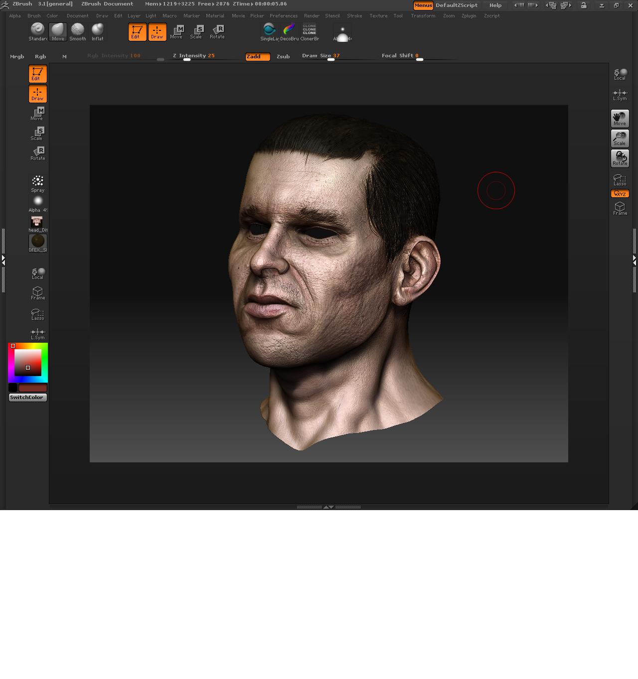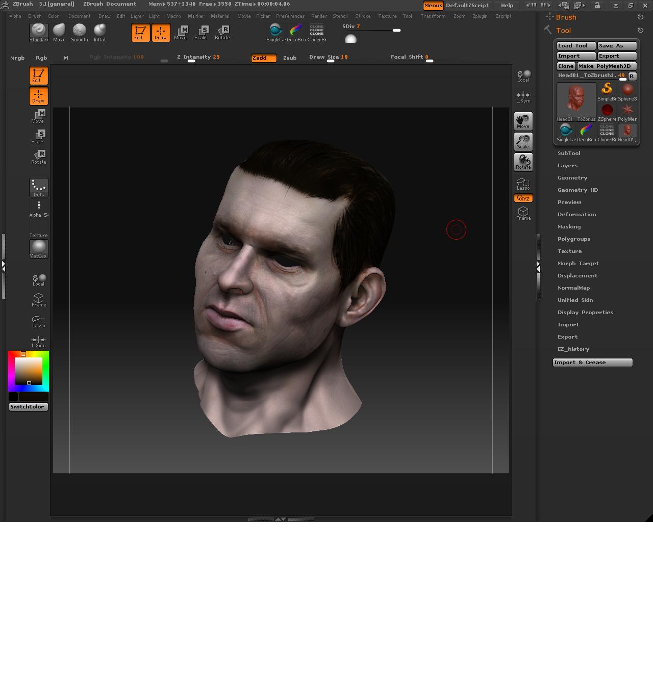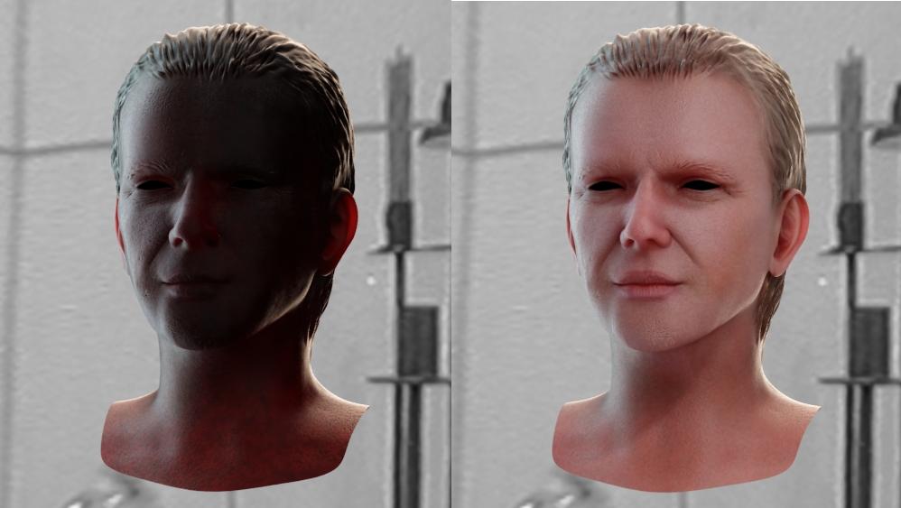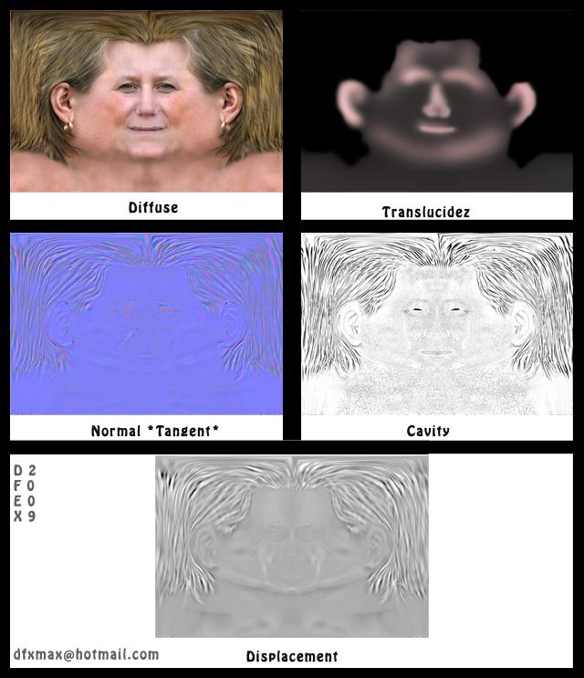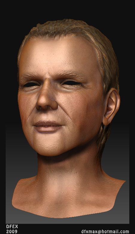 Y para la piel, ayer leí un tutorial de Dexter en renderout que hablaba de cómo colorear las caras según la zona y teniendo en cuenta lo que hubiese debajo de la piel, me pareció muy interesante y realmente funciona muy bien. Igual es algo muy básico, pero yo no lo sabía.