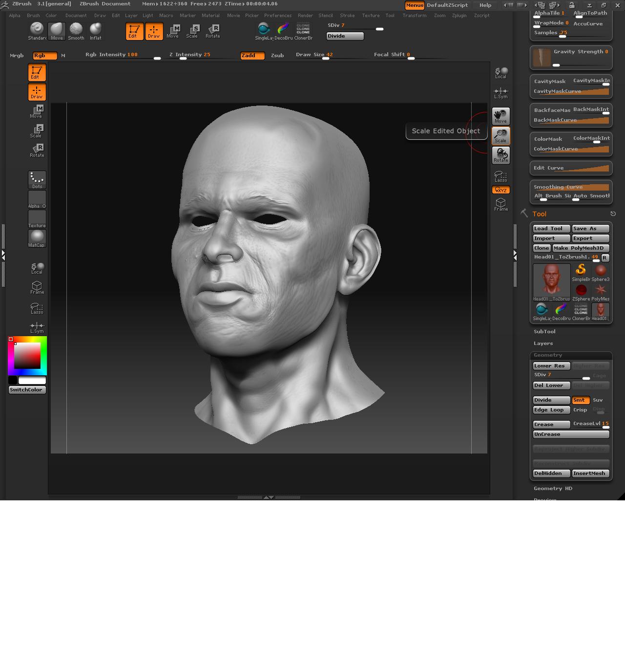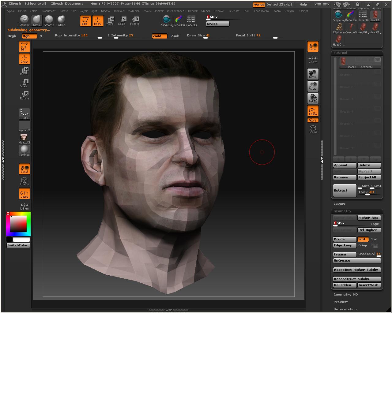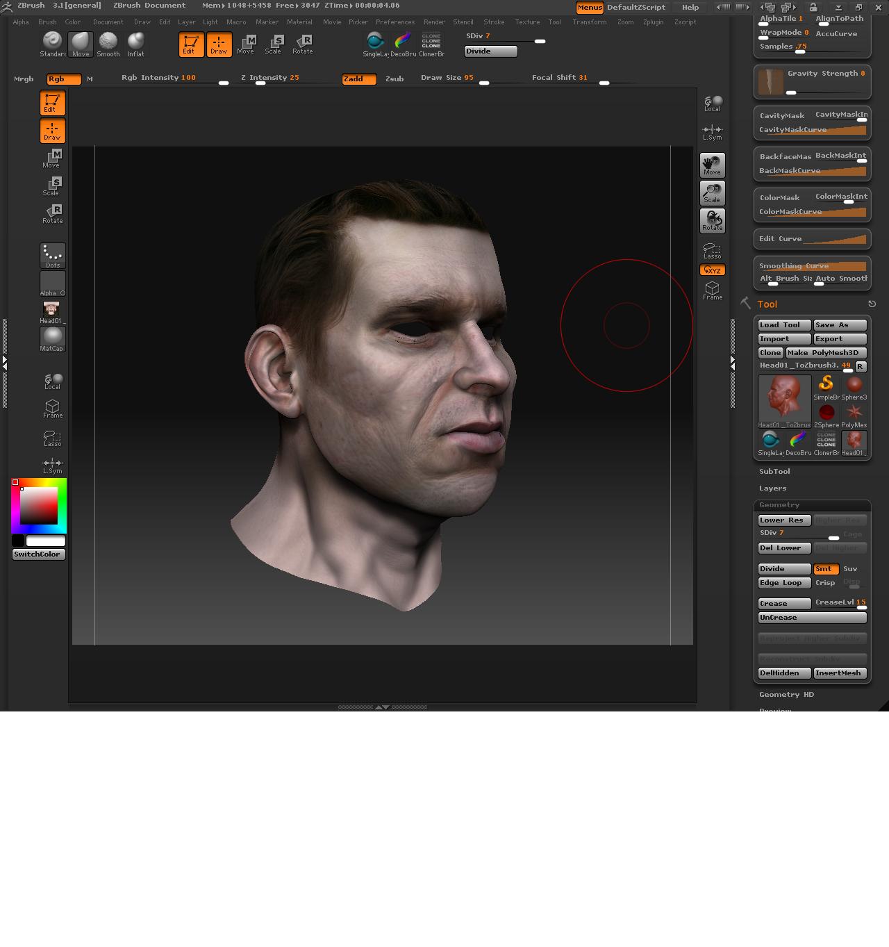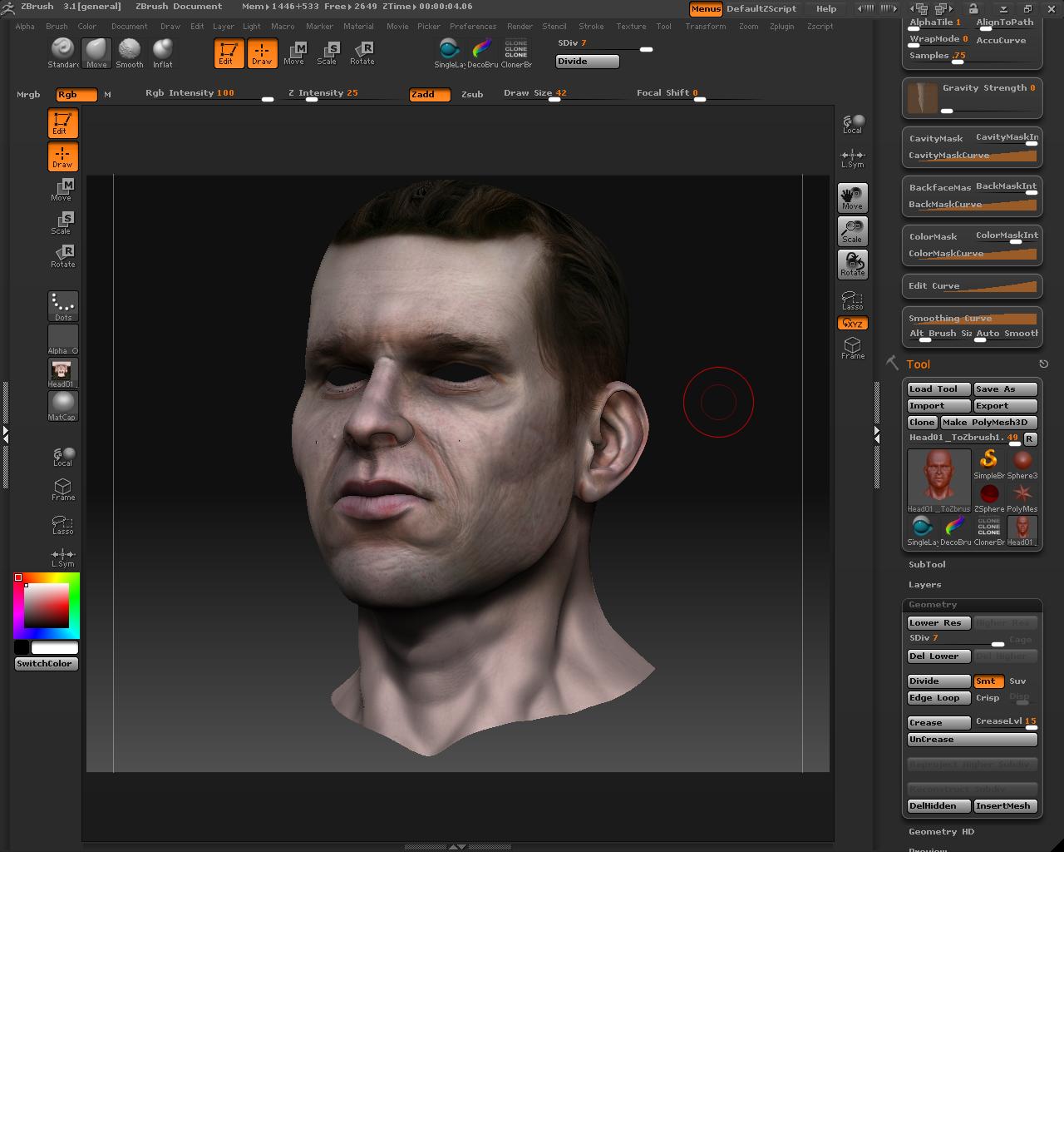 Y para la piel, ayer leí un tutorial de Dexter en renderout que hablaba de cómo colorear las caras según la zona y teniendo en cuenta lo que hubiese debajo de la piel, me pareció muy interesante y realmente funciona muy bien. Igual es algo muy básico, pero yo no lo sabía.