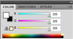 Ahora restauramos los colores por defecto en Adobe Photoshop, tenemos que pulsar en nuestro teclado la letra d y después invertir estos colores pulsando la letra x, nos quedará algo así: